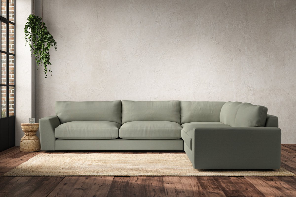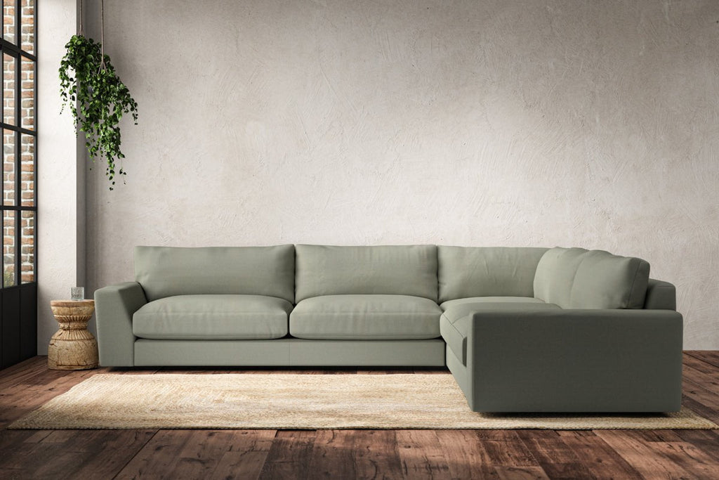 The laid-back sculptural shape of the Guddu grand right hand corner sofa brings effortless style to an interior. The generous arms and deep seat cushions make this collection the perfect choice for families or those that like a bit of extra space to stretch out. Details include separate back cushions, exceptional quality fabrics and solid wood block feet. Each piece is handcrafted by experts using traditional techniques for a quality finish that celebrates the best of British craftmanship.