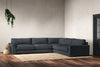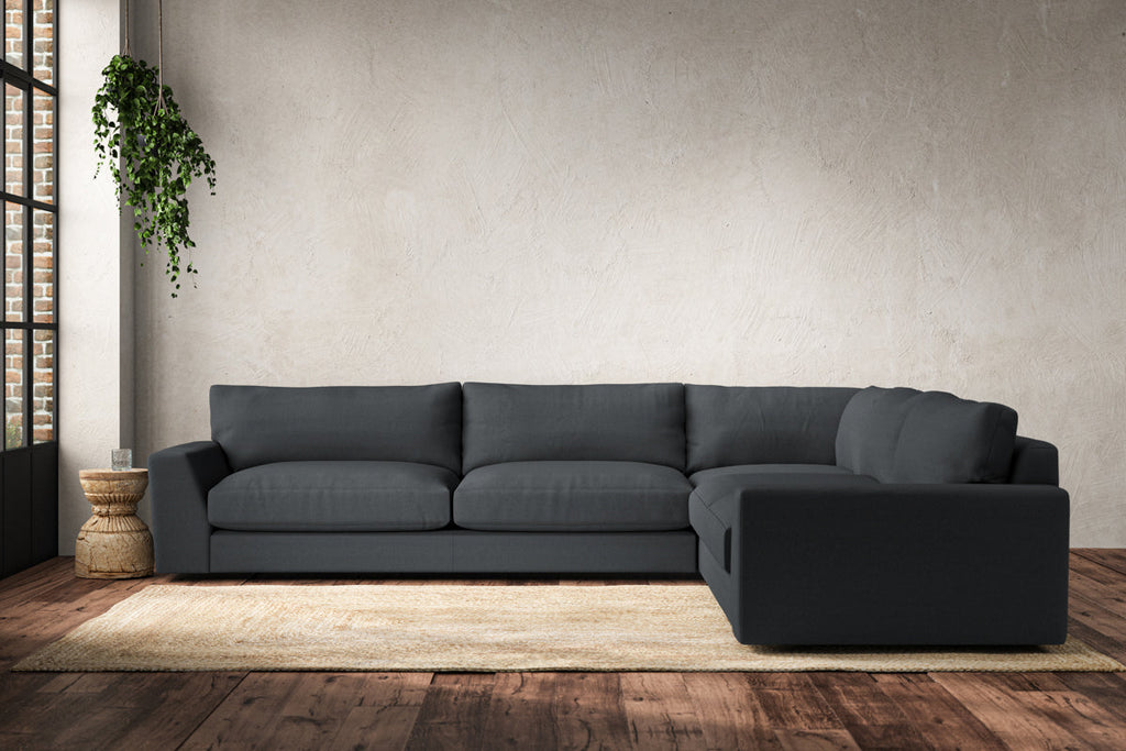 The laid-back sculptural shape of the Guddu grand right hand corner sofa brings effortless style to an interior. The generous arms and deep seat cushions make this collection the perfect choice for families or those that like a bit of extra space to stretch out. Details include separate back cushions, exceptional quality fabrics and solid wood block feet. Each piece is handcrafted by experts using traditional techniques for a quality finish that celebrates the best of British craftmanship.
