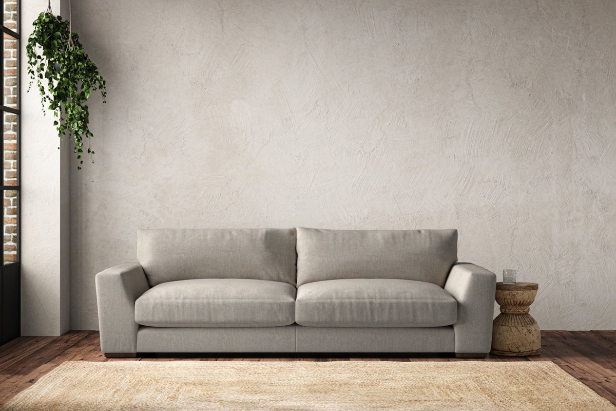 The laid-back sculptural shape of the Guddu grand sofa brings effortless style to an interior. The generous arms and deep seat cushions make this collection the perfect choice for families or those that like a bit of extra space to stretch out. Details include separate back cushions, exceptional quality fabrics and solid wood block feet. Each piece is handcrafted by experts using traditional techniques for a quality finish that celebrates the best of British craftmanship.