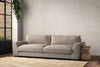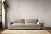 The laid-back sculptural shape of the Guddu grand sofa brings effortless style to an interior. The generous arms and deep seat cushions make this collection the perfect choice for families or those that like a bit of extra space to stretch out. Details include separate back cushions, exceptional quality fabrics and solid wood block feet. Each piece is handcrafted by experts using traditional techniques for a quality finish that celebrates the best of British craftmanship.