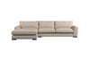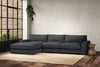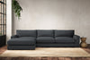 The laid-back sculptural shape of the Guddu large left hand chaise sofa brings effortless style to an interior. The generous arms and deep seat cushions make this collection the perfect choice for families or those that like a bit of extra space to stretch out. Details include separate back cushions, exceptional quality fabrics and solid wood block feet. Each piece is handcrafted by experts using traditional techniques for a quality finish that celebrates the best of British craftmanship.
