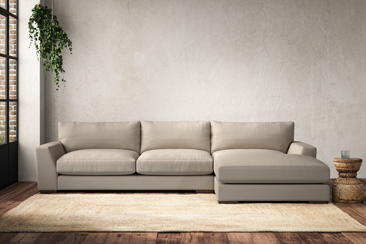 Guddu Large Right Hand Chaise Sofa - Recycled Cotton Stone