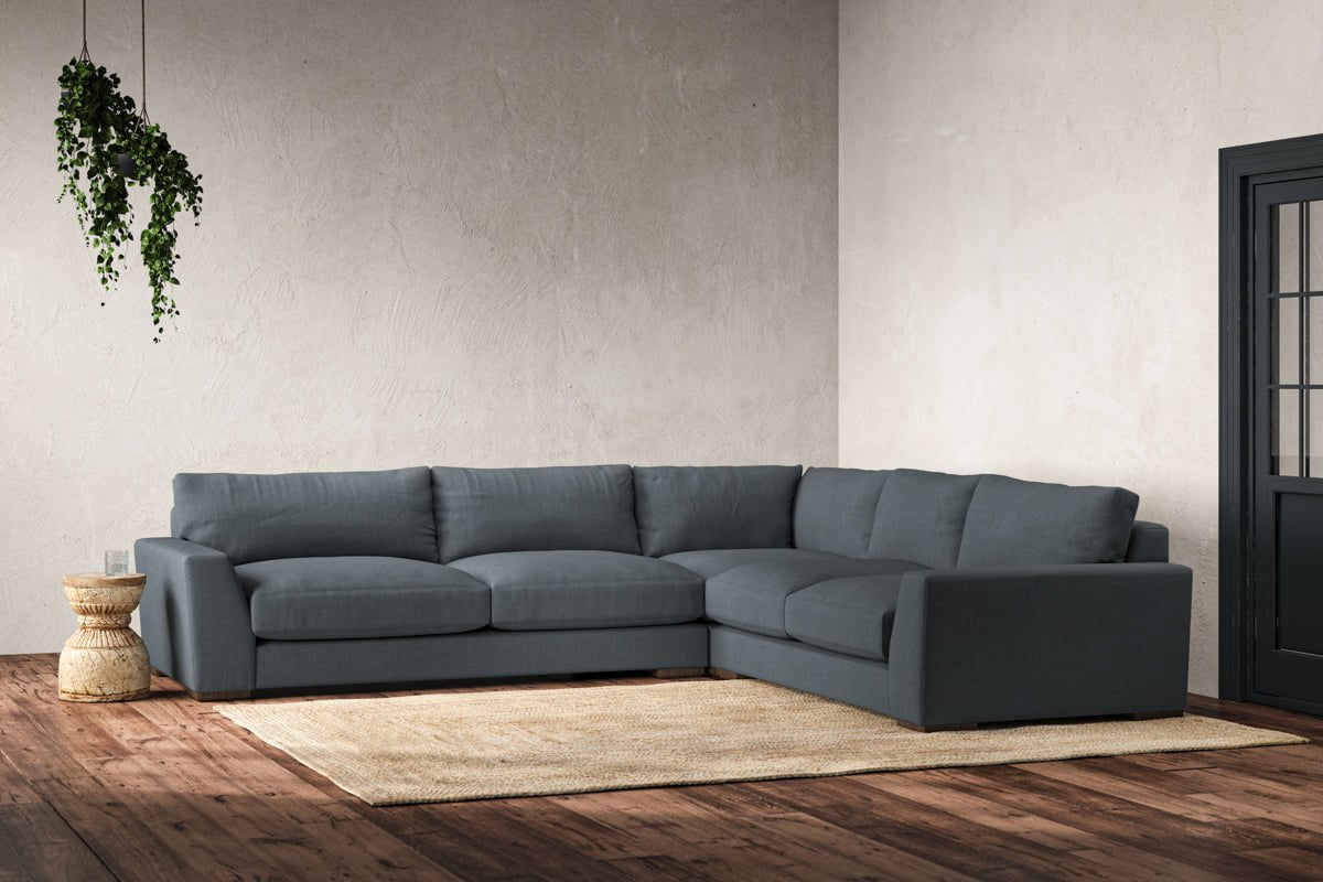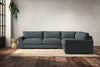 The laid-back sculptural shape of the Guddu large right hand corner sofa brings effortless style to an interior. The generous arms and deep seat cushions make this collection the perfect choice for families or those that like a bit of extra space to stretch out. Details include separate back cushions, exceptional quality fabrics and solid wood block feet. Each piece is handcrafted by experts using traditional techniques for a quality finish that celebrates the best of British craftmanship.