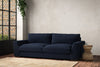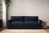 The laid-back sculptural shape of the Guddu large sofa brings effortless style to an interior. The generous arms and deep seat cushions make this collection the perfect choice for families or those that like a bit of extra space to stretch out. Details include separate back cushions, exceptional quality fabrics and solid wood block feet. Each piece is handcrafted by experts using traditional techniques for a quality finish that celebrates the best of British craftmanship.