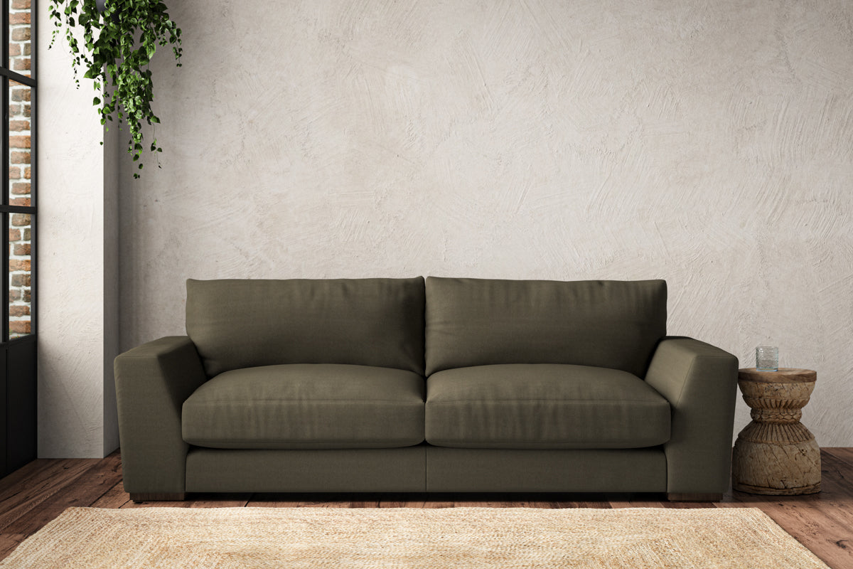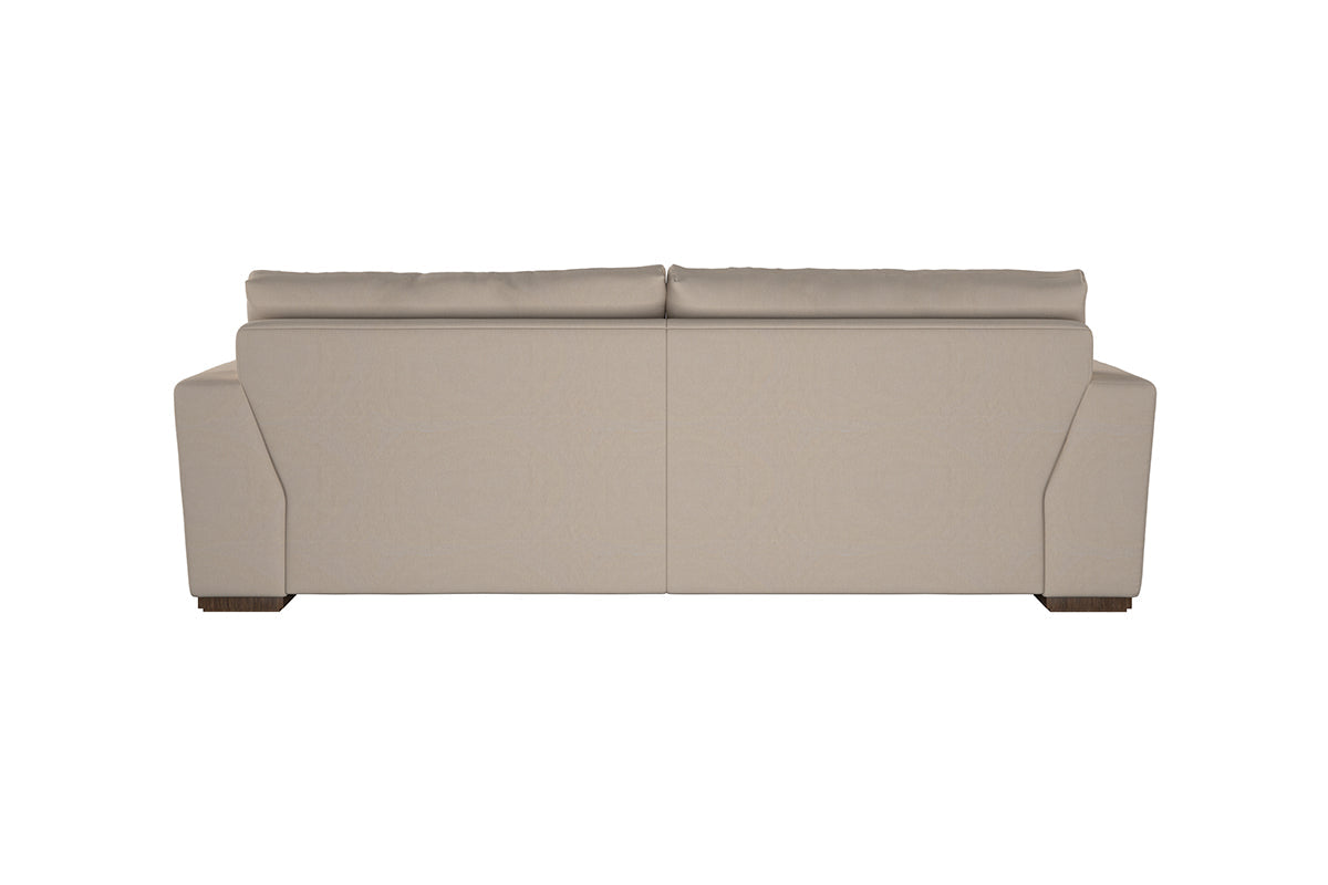 The laid-back sculptural shape of the Guddu large sofa brings effortless style to an interior. The generous arms and deep seat cushions make this collection the perfect choice for families or those that like a bit of extra space to stretch out. Details include separate back cushions, exceptional quality fabrics and solid wood block feet. Each piece is handcrafted by experts using traditional techniques for a quality finish that celebrates the best of British craftmanship.