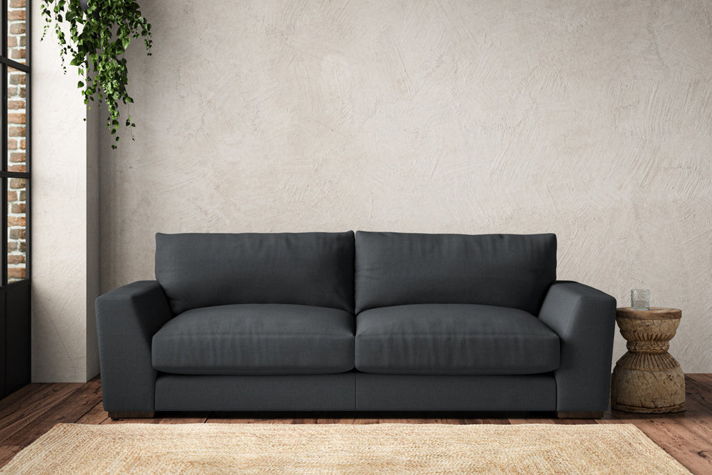 The laid-back sculptural shape of the Guddu large sofa brings effortless style to an interior. The generous arms and deep seat cushions make this collection the perfect choice for families or those that like a bit of extra space to stretch out. Details include separate back cushions, exceptional quality fabrics and solid wood block feet. Each piece is handcrafted by experts using traditional techniques for a quality finish that celebrates the best of British craftmanship.