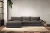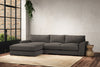 The laid-back sculptural shape of the Guddu medium left hand chaise sofa brings effortless style to an interior. The generous arms and deep seat cushions make this collection the perfect choice for families or those that like a bit of extra space to stretch out. Details include separate back cushions, exceptional quality fabrics and solid wood block feet. Each piece is handcrafted by experts using traditional techniques for a quality finish that celebrates the best of British craftmanship.
