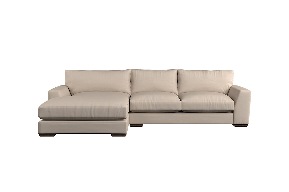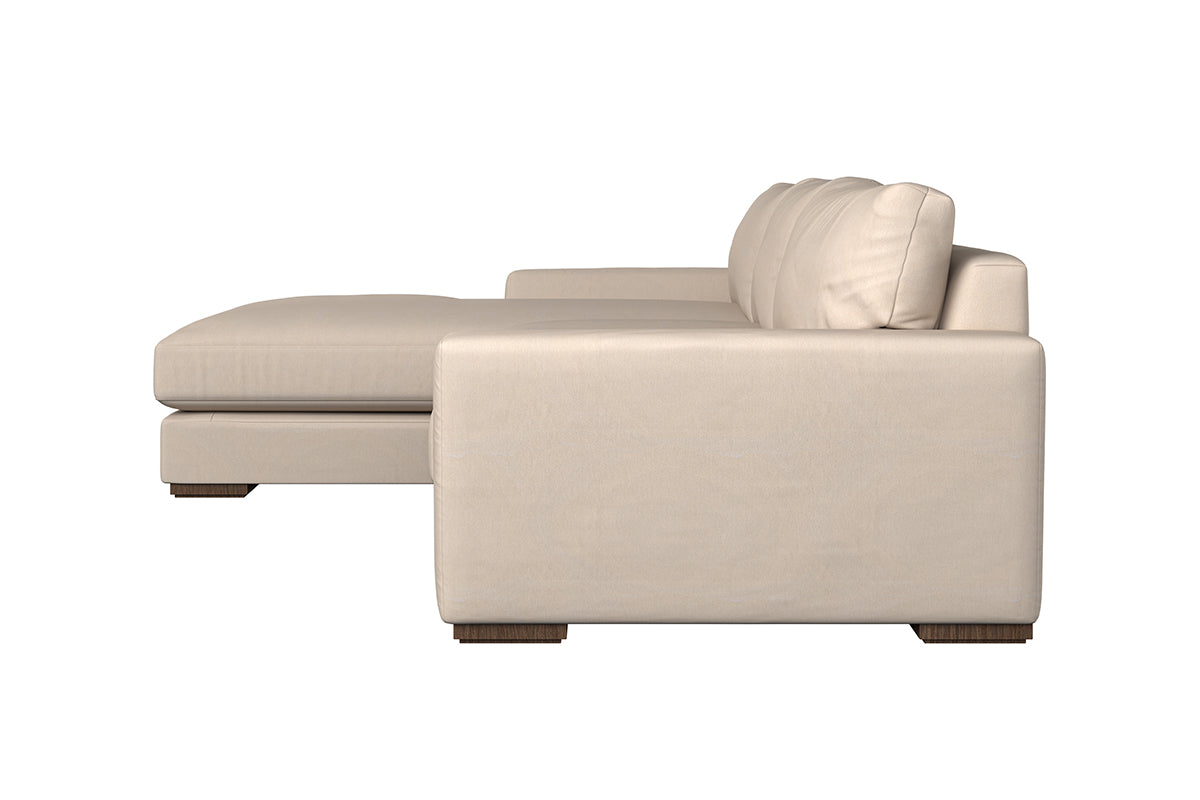 The laid-back sculptural shape of the Guddu medium left hand chaise sofa brings effortless style to an interior. The generous arms and deep seat cushions make this collection the perfect choice for families or those that like a bit of extra space to stretch out. Details include separate back cushions, exceptional quality fabrics and solid wood block feet. Each piece is handcrafted by experts using traditional techniques for a quality finish that celebrates the best of British craftmanship.