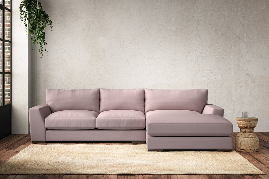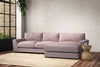 The laid-back sculptural shape of the Guddu medium right hand chaise sofa brings effortless style to an interior. The generous arms and deep seat cushions make this collection the perfect choice for families or those that like a bit of extra space to stretch out. Details include separate back cushions, exceptional quality fabrics and solid wood block feet. Each piece is handcrafted by experts using traditional techniques for a quality finish that celebrates the best of British craftmanship.