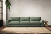The laid-back sculptural shape of the Guddu super grand sofa brings effortless style to an interior. The generous arms and deep seat cushions make this collection the perfect choice for families or those that like a bit of extra space to stretch out. Details include separate back cushions, exceptional quality fabrics and solid wood block feet. Each piece is handcrafted by experts using traditional techniques for a quality finish that celebrates the best of British craftmanship.