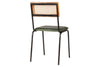 The Iswa leather and cane dining chair marries together three contrasting materials. It features an industrial black iron frame with a wood and cane back support, and a dark green goat leather seat. The natural cane detailing gives this chair an attractive and light feel, while its padded leather seat adds comfort as well as style.