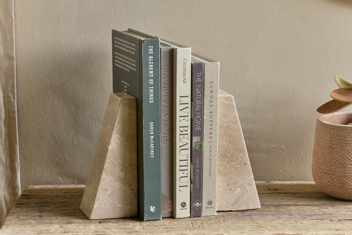 Simple, sturdy and stylish, our Juda marble bookends are hand crafted from solid grey marble that we love for its unique, variegated tones. These practical book ends are perfectly weighted and the smooth finish of this luxurious material has an appealing tactile quality, making them the perfect way to display your favourite books.