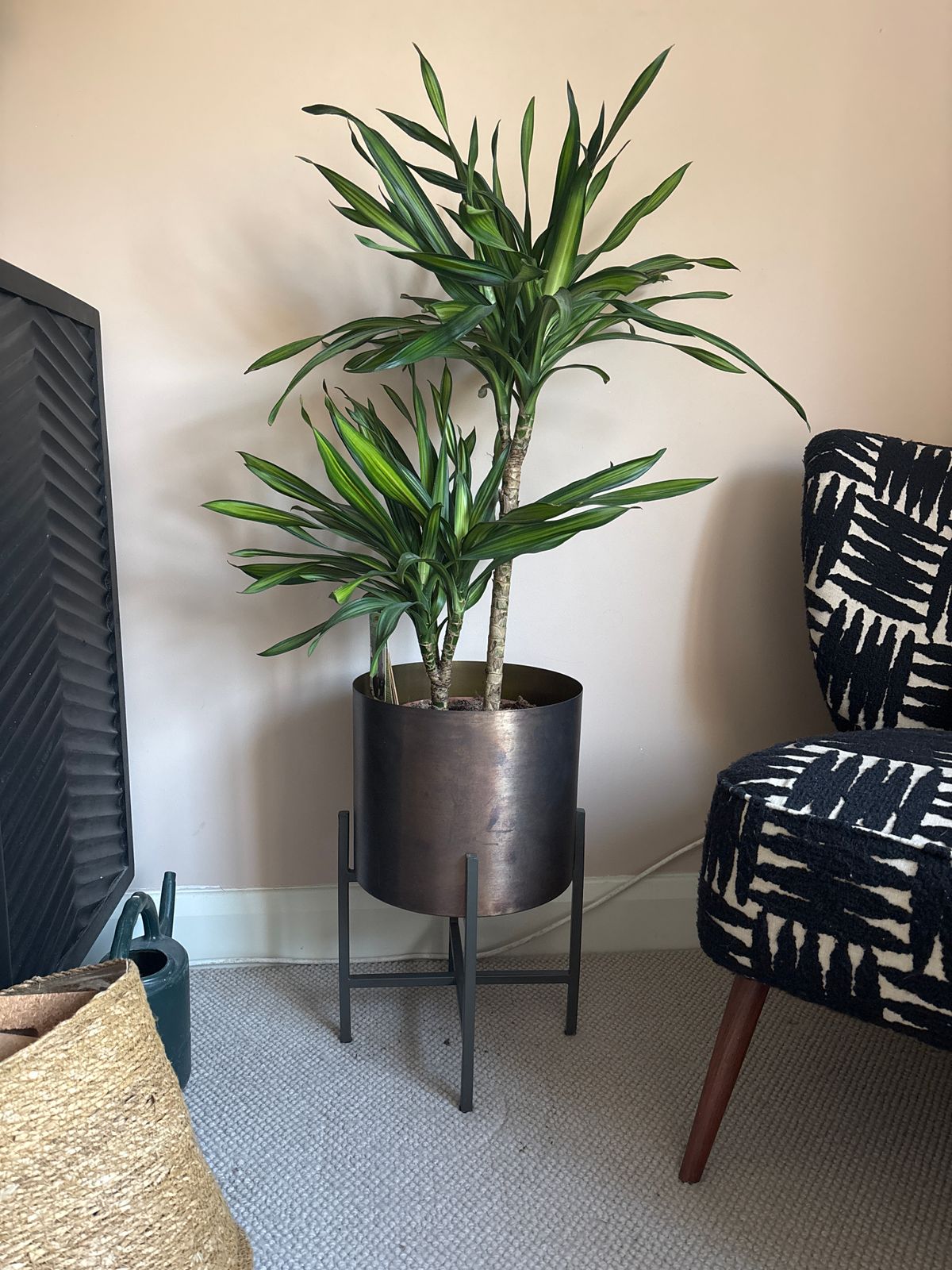 Discover moreContemporary in design, our Juoni iron planter has a stylish brass holder that sits neatly into a linear iron stand. The stand has a simple criss-cross base with a black finish. The contrast between its two materials adds to the sophisticated look and will complement the vivid greens of house plants.
