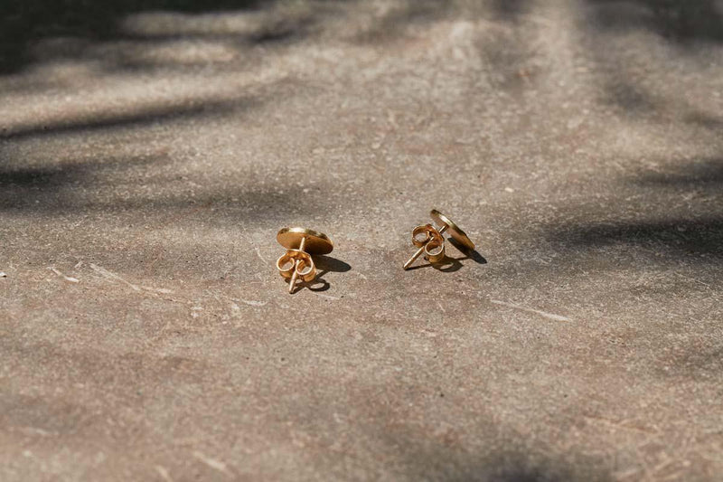 Beautifully tactile to touch and elegant to wear, our Karnataka Disc Earrings are hand crafted with gold plating. The textured detailing is gently created using traditional tools, resulting in a delicately unique hammered finish.