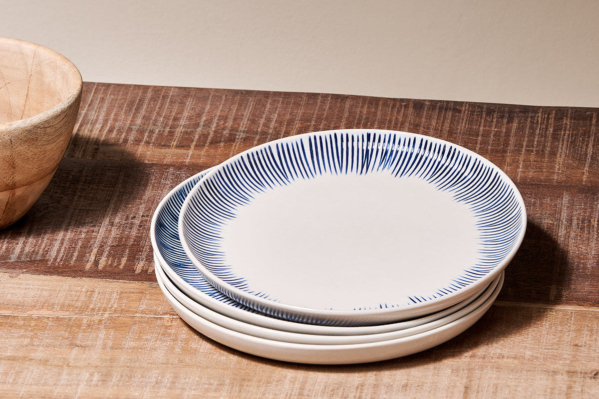 We love the pattern on this stylish dinner service. The pattern frames the plate perfectly and provides a great back drop for culinary delights. Our Karuma Ceramic Plates have a distinctive and striking design. The thin blue lines are first etched into the clay then hand painted. This collection is handmade in north Vietnam using age - old methods. The collections are painted and shaped by hand incorporating indigenous and contemporary influences.