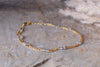 This beautiful (and extendable) anklet is a charming and elegant addition to our summer jewellery line up. Easy to wear, it has a laidback and effortlessly boho look, discreetly dazzling with several semi-precious hand-cut stones placed at intervals along two chains made of hand-cut metal beads with gold plating. Labradorite is an iridescent stone that comes in a range of tones - here we have chosen ones with a delicate lilac-grey hue for versatility when pairing with other pieces and because it captures the light beautifully, exuding an effortless grace and simplicity. Labradorite is associated with the throat and third eye chakra and is said to be connected to communication, wisdom and intuition.