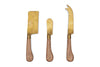 This trio of cheese knives are as functional as they are beautiful. Hand hammered stainless steel blades in a gold finish look striking coupled with the warm red tones of the natural acacia wood handles held in place with matching gold rivets and collar. Relaxed yet elegant, these serving pieces will look equally striking at a seasonal feast as on a more laidback table setting.