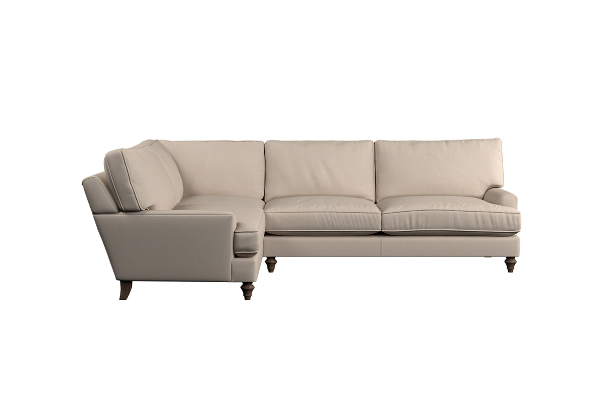 The classic design of our Marri grand left hand corner sofa has a timeless appeal that suits almost any interior. Each piece is handcrafted by our specialist team in our Nottinghamshire workshop combining traditional techniques with exceptional craftmanship. Well-considered details ensure lasting quality, including piped edging, separate back cushions, and hand-turned hardwood feet.