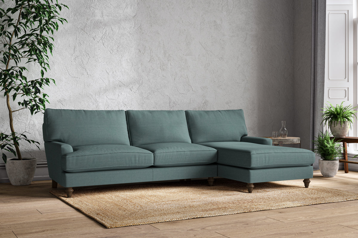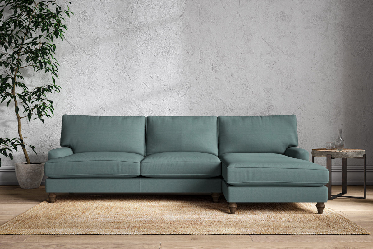 The classic design of our Marri grand right hand chaise sofa has a timeless appeal that suits almost any interior. Each piece is handcrafted by our specialist team in our Nottinghamshire workshop combining traditional techniques with exceptional craftmanship. Well-considered details ensure lasting quality, including piped edging, separate back cushions, and hand-turned hardwood feet.