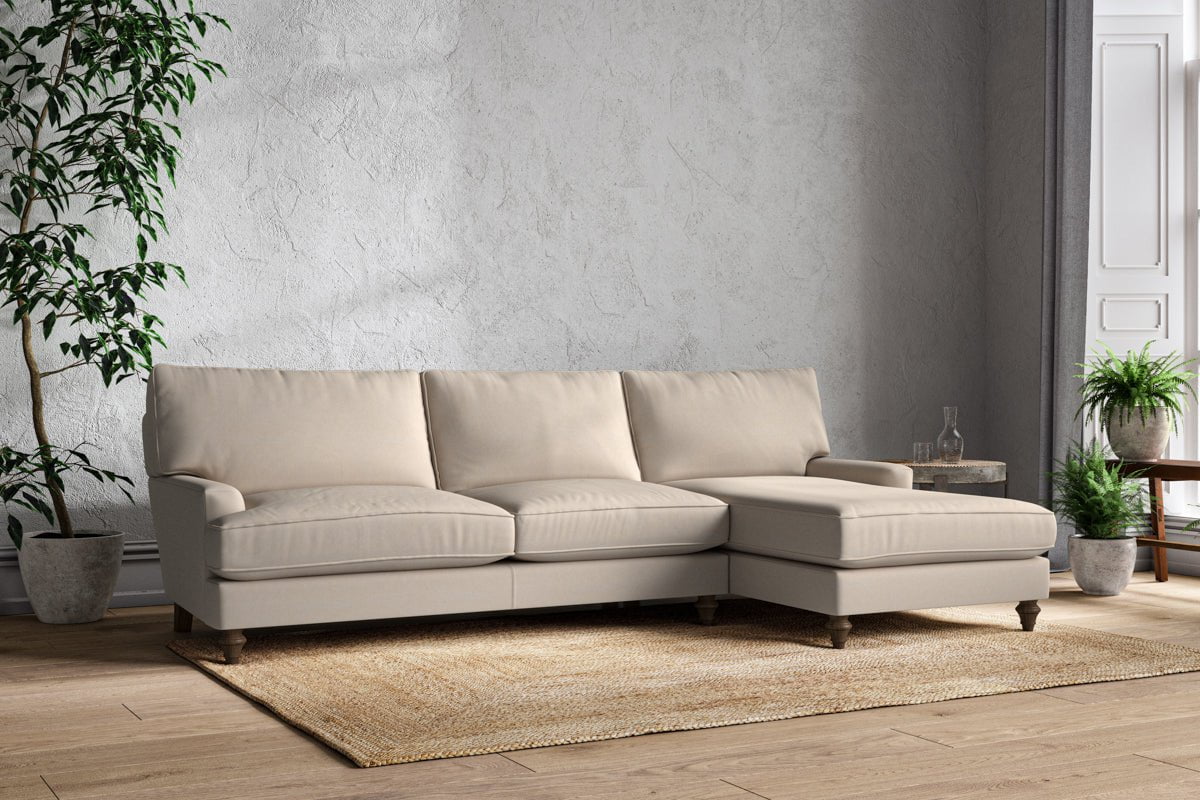 The classic design of our Marri grand right hand chaise sofa has a timeless appeal that suits almost any interior. Each piece is handcrafted by our specialist team in our Nottinghamshire workshop combining traditional techniques with exceptional craftmanship. Well-considered details ensure lasting quality, including piped edging, separate back cushions, and hand-turned hardwood feet.