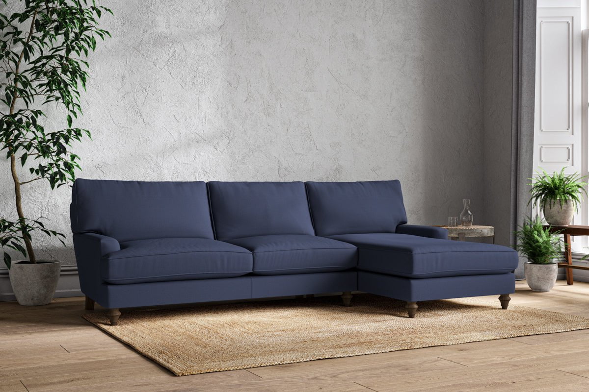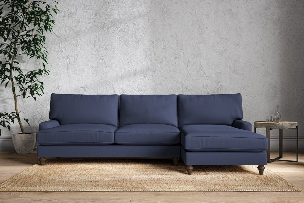 The classic design of our Marri grand right hand chaise sofa has a timeless appeal that suits almost any interior. Each piece is handcrafted by our specialist team in our Nottinghamshire workshop combining traditional techniques with exceptional craftmanship. Well-considered details ensure lasting quality, including piped edging, separate back cushions, and hand-turned hardwood feet.
