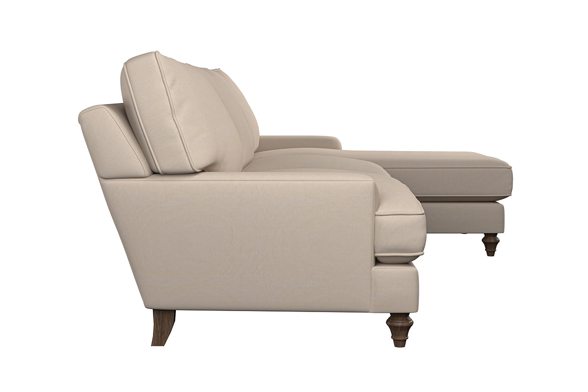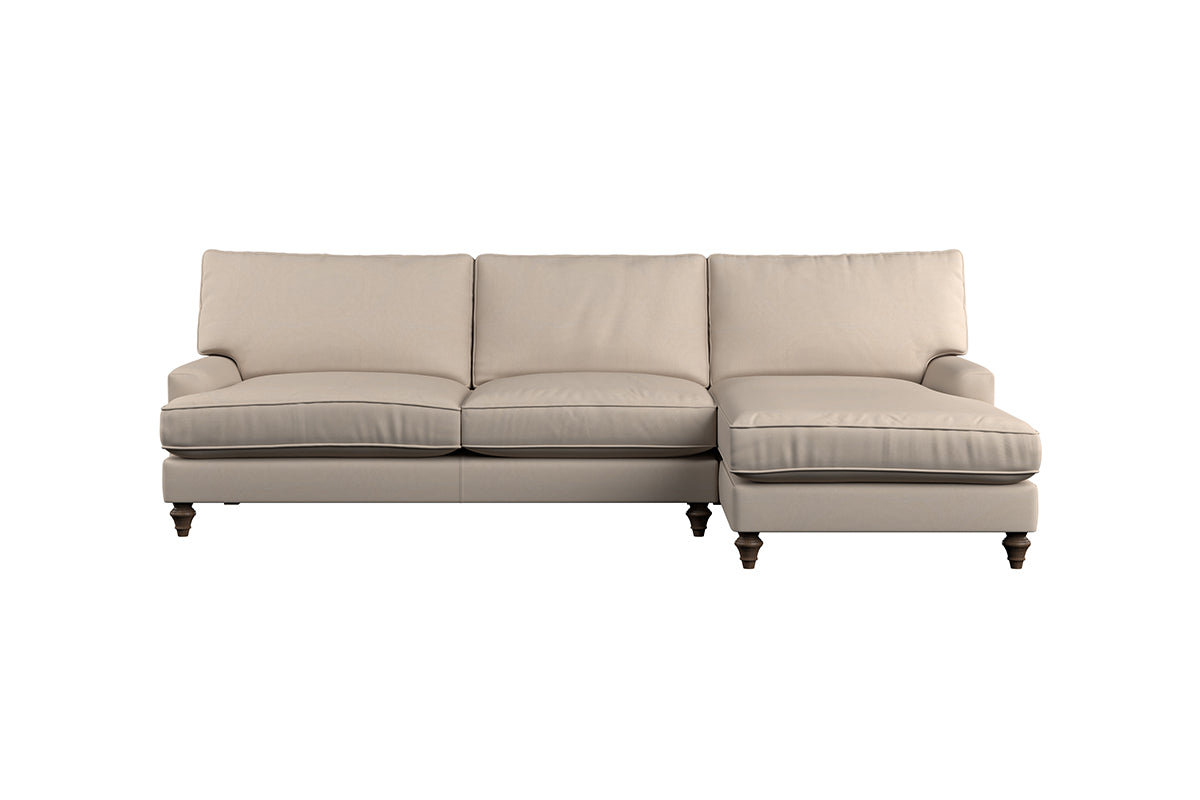 The classic design of our Marri grand right hand chaise sofa has a timeless appeal that suits almost any interior. Each piece is handcrafted by our specialist team in our Nottinghamshire workshop combining traditional techniques with exceptional craftmanship. Well-considered details ensure lasting quality, including piped edging, separate back cushions, and hand-turned hardwood feet.