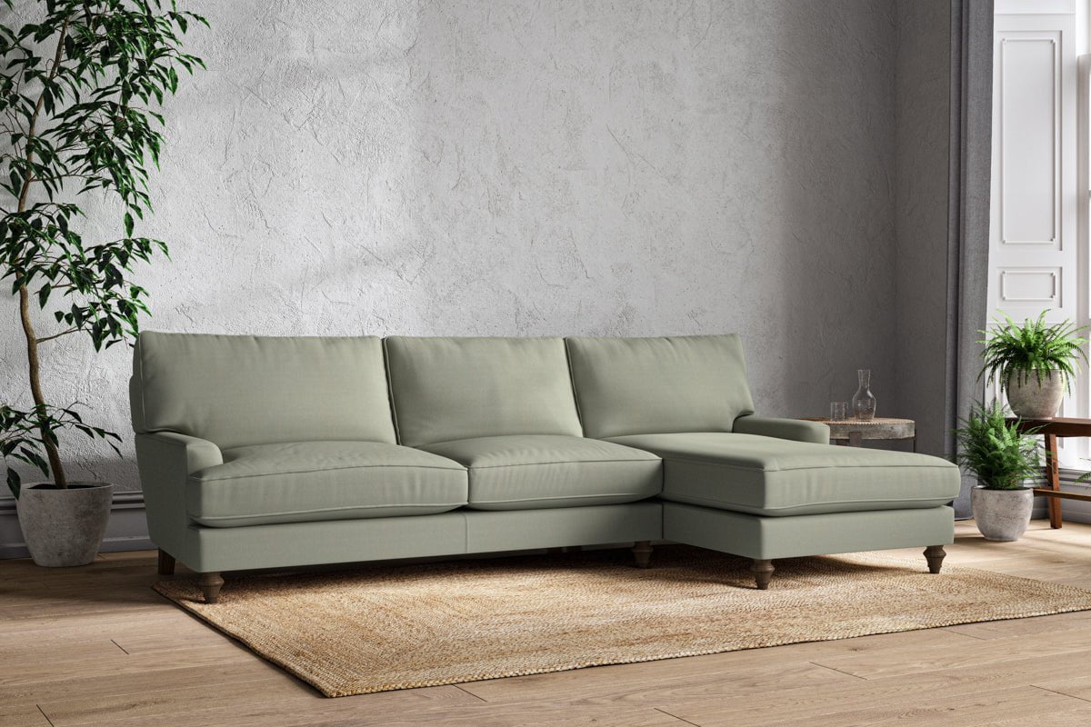 The classic design of our Marri grand right hand chaise sofa has a timeless appeal that suits almost any interior. Each piece is handcrafted by our specialist team in our Nottinghamshire workshop combining traditional techniques with exceptional craftmanship. Well-considered details ensure lasting quality, including piped edging, separate back cushions, and hand-turned hardwood feet.