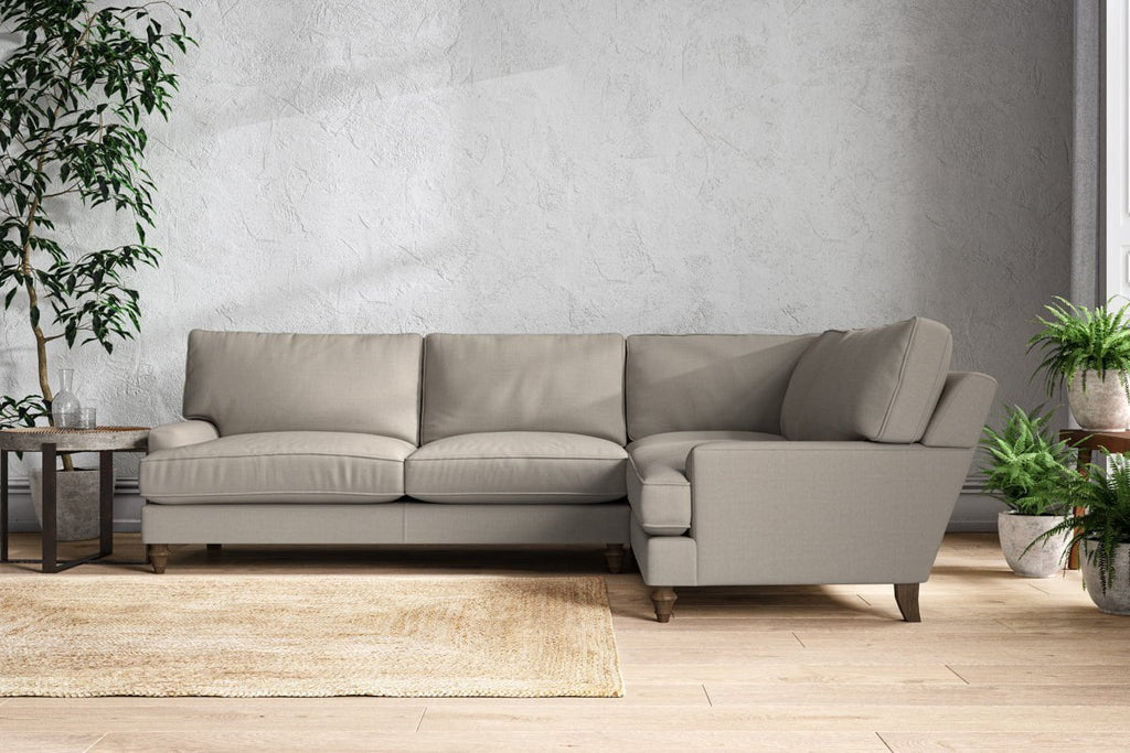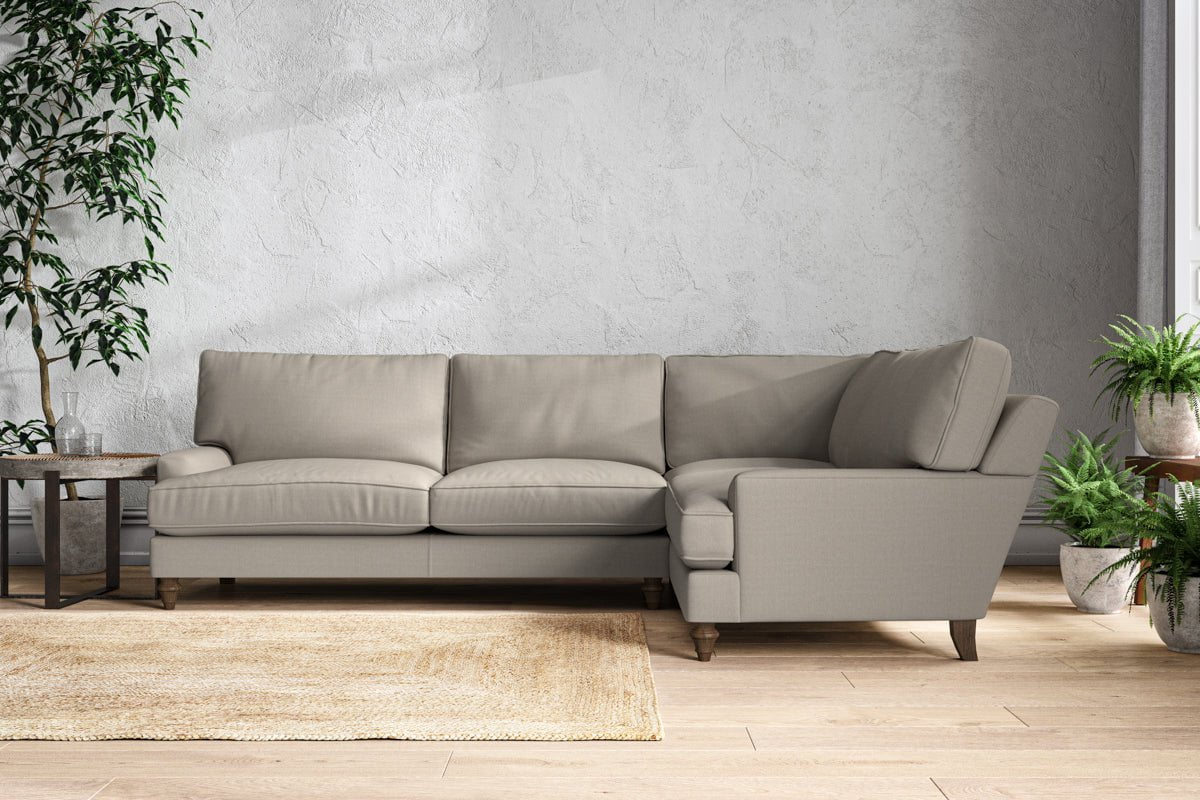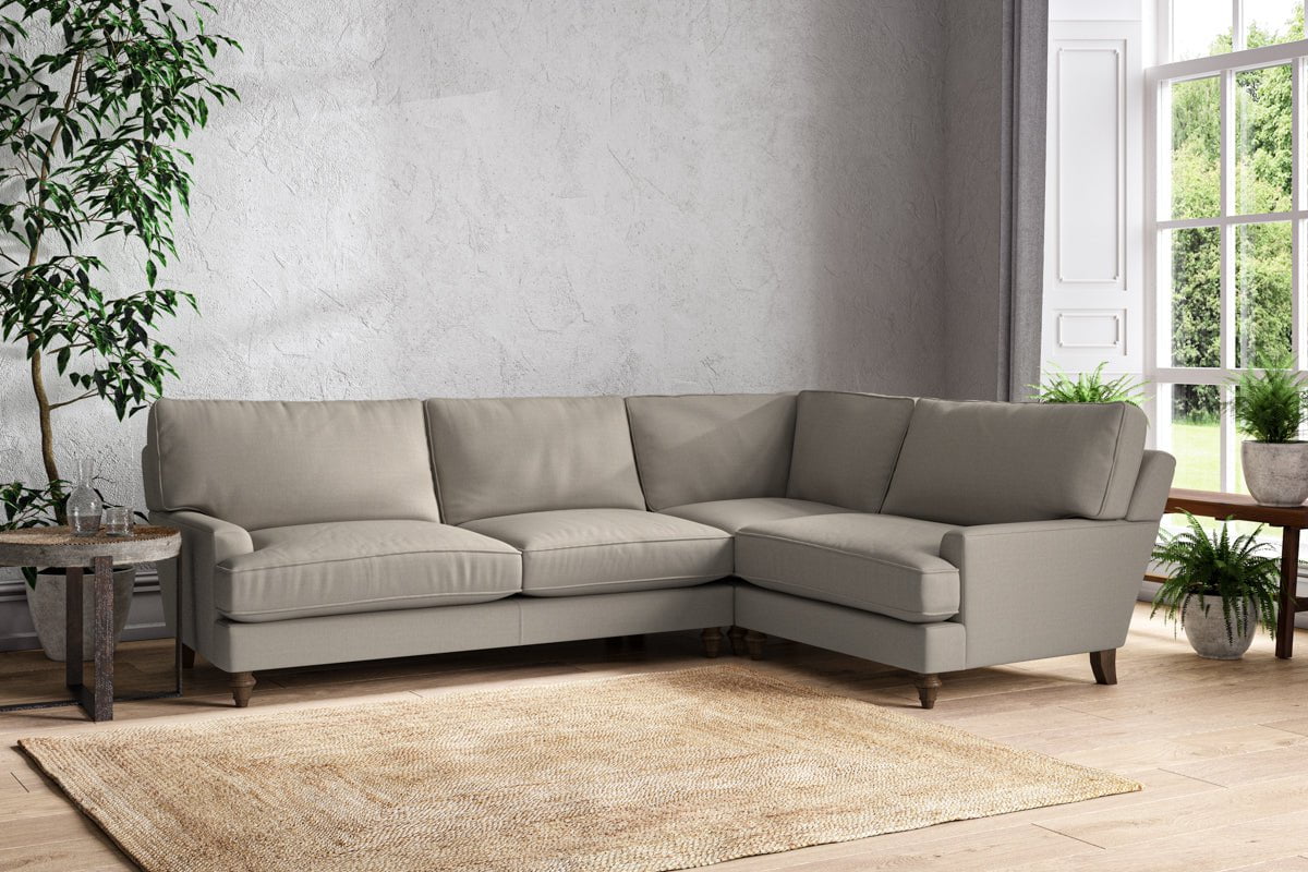 The classic design of our Marri grand right hand corner sofa has a timeless appeal that suits almost any interior. Each piece is handcrafted by our specialist team in our Nottinghamshire workshop combining traditional techniques with exceptional craftmanship. Well-considered details ensure lasting quality, including piped edging, separate back cushions, and hand-turned hardwood feet.