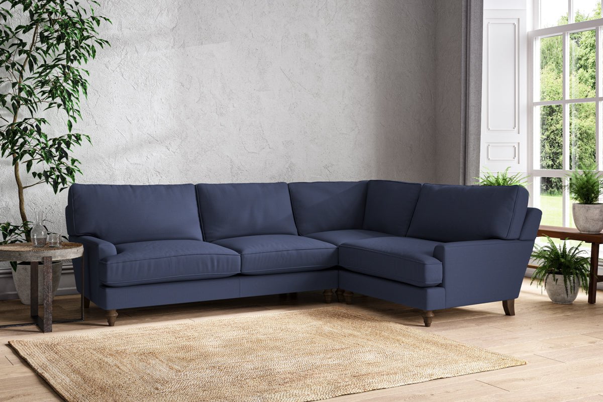 The classic design of our Marri grand right hand corner sofa has a timeless appeal that suits almost any interior. Each piece is handcrafted by our specialist team in our Nottinghamshire workshop combining traditional techniques with exceptional craftmanship. Well-considered details ensure lasting quality, including piped edging, separate back cushions, and hand-turned hardwood feet.