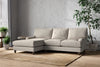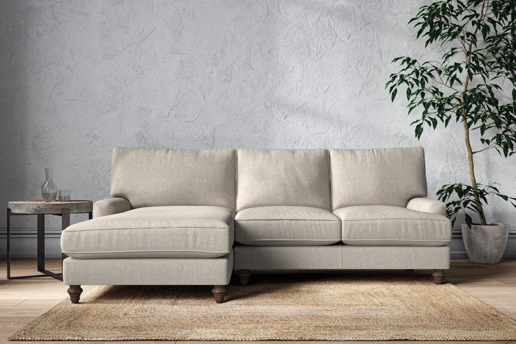The classic design of our Marri large left hand chaise sofa has a timeless appeal that suits almost any interior. Each piece is handcrafted by our specialist team in our Nottinghamshire workshop combining traditional techniques with exceptional craftmanship. Well-considered details ensure lasting quality, including piped edging, separate back cushions, and hand-turned hardwood feet.
