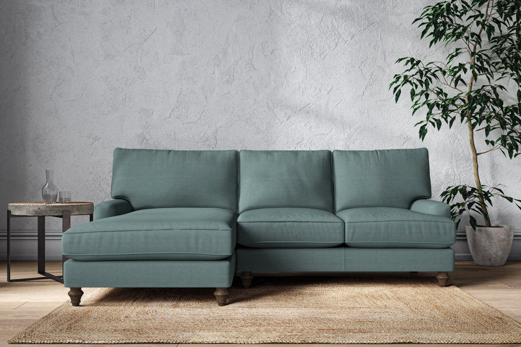 The classic design of our Marri large left hand chaise sofa has a timeless appeal that suits almost any interior. Each piece is handcrafted by our specialist team in our Nottinghamshire workshop combining traditional techniques with exceptional craftmanship. Well-considered details ensure lasting quality, including piped edging, separate back cushions, and hand-turned hardwood feet.