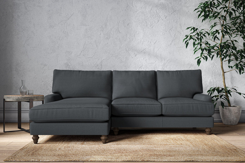 The classic design of our Marri large left hand chaise sofa has a timeless appeal that suits almost any interior. Each piece is handcrafted by our specialist team in our Nottinghamshire workshop combining traditional techniques with exceptional craftmanship. Well-considered details ensure lasting quality, including piped edging, separate back cushions, and hand-turned hardwood feet.