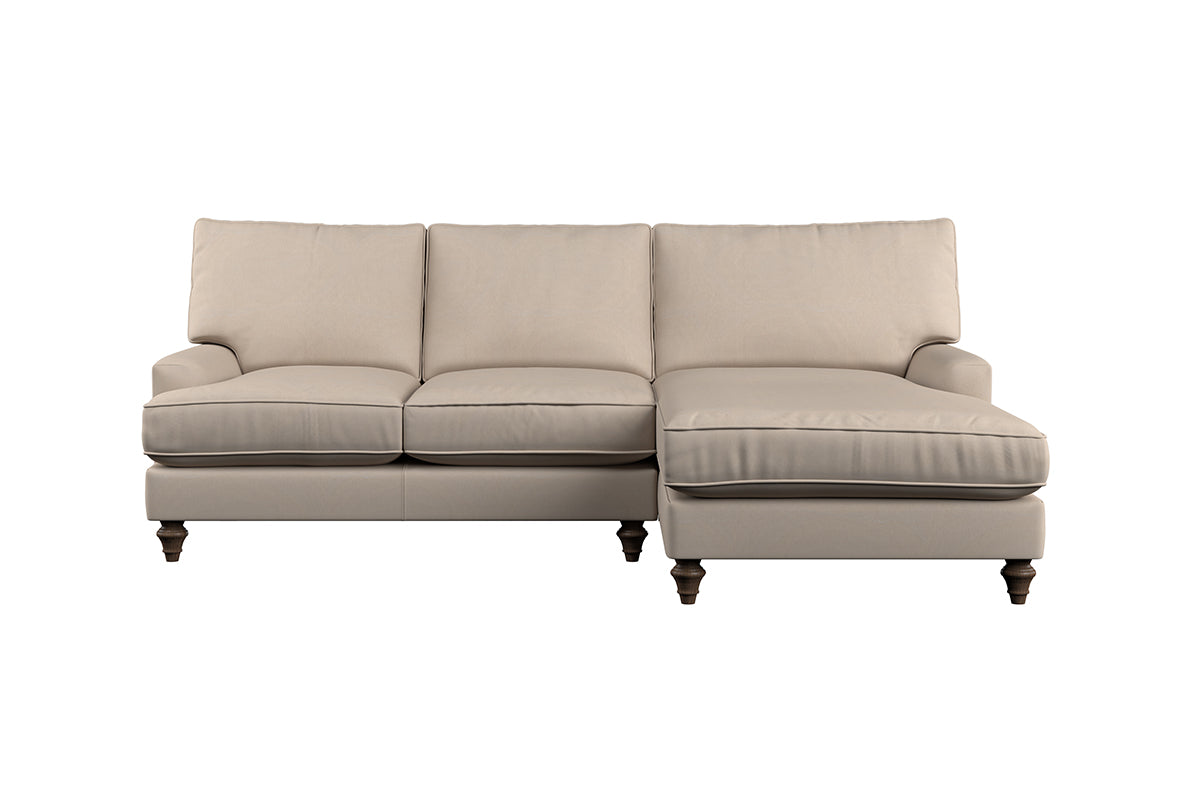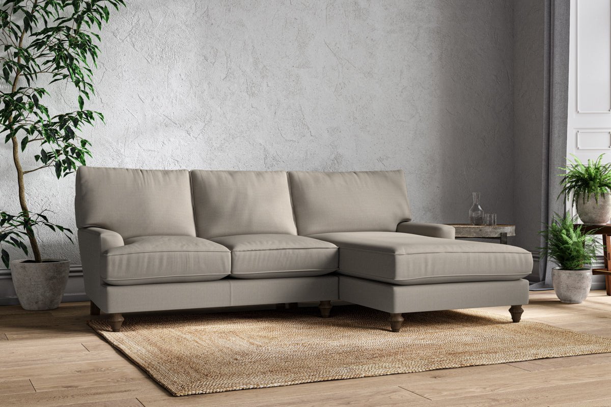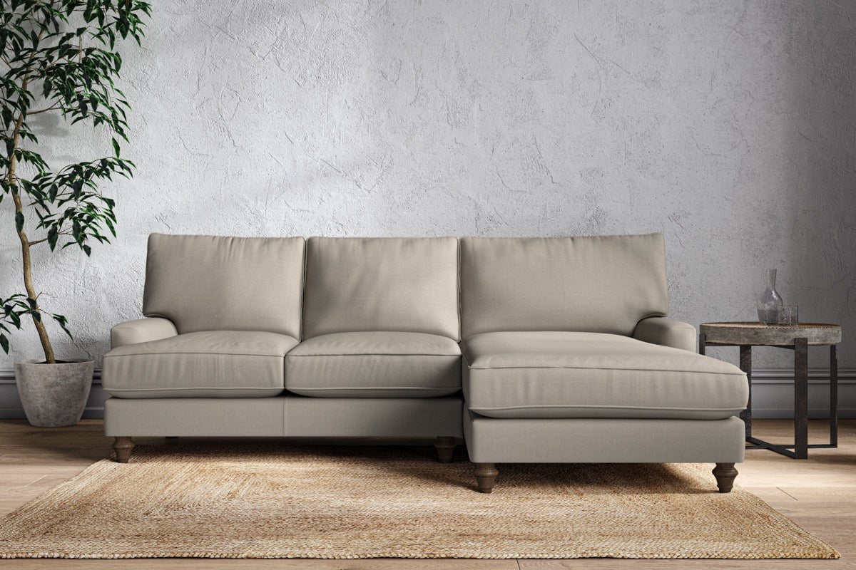 The classic design of our Marri large right hand chaise sofa has a timeless appeal that suits almost any interior. Each piece is handcrafted by our specialist team in our Nottinghamshire workshop combining traditional techniques with exceptional craftmanship. Well-considered details ensure lasting quality, including piped edging, separate back cushions, and hand-turned hardwood feet.