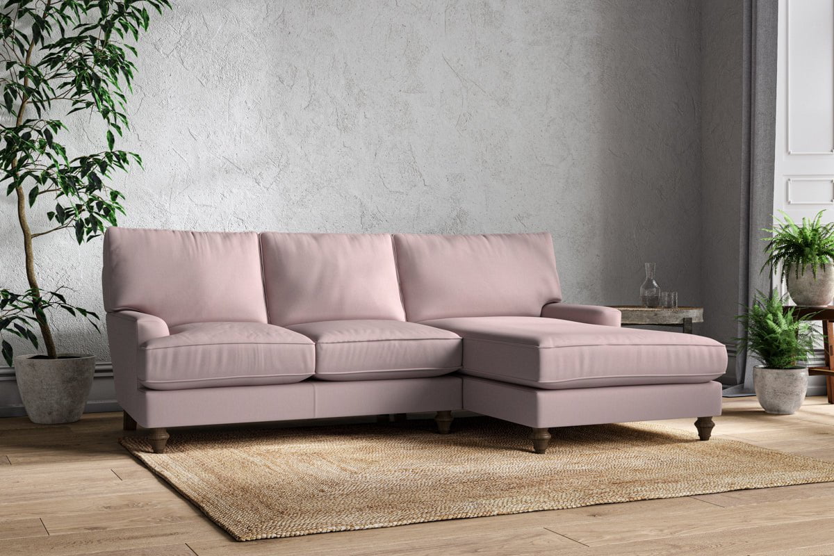 The classic design of our Marri large right hand chaise sofa has a timeless appeal that suits almost any interior. Each piece is handcrafted by our specialist team in our Nottinghamshire workshop combining traditional techniques with exceptional craftmanship. Well-considered details ensure lasting quality, including piped edging, separate back cushions, and hand-turned hardwood feet.