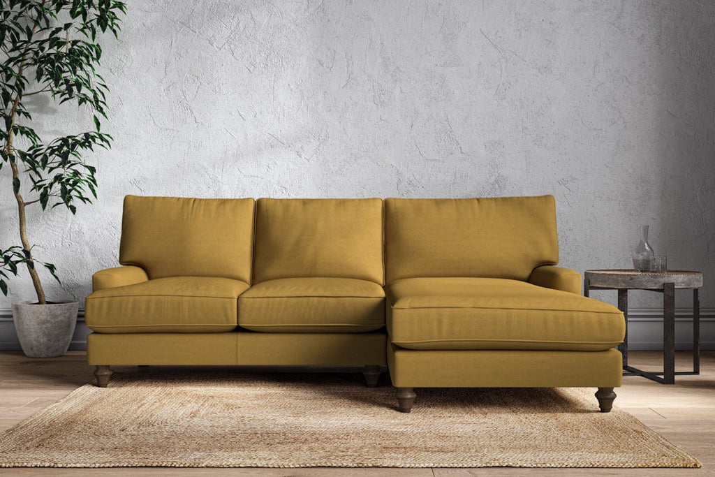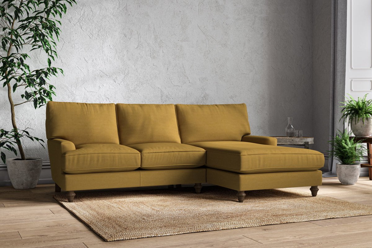 The classic design of our Marri large right hand chaise sofa has a timeless appeal that suits almost any interior. Each piece is handcrafted by our specialist team in our Nottinghamshire workshop combining traditional techniques with exceptional craftmanship. Well-considered details ensure lasting quality, including piped edging, separate back cushions, and hand-turned hardwood feet.