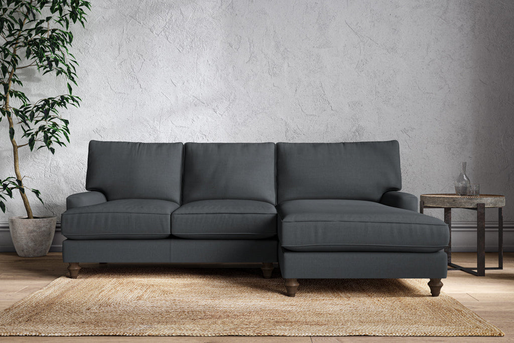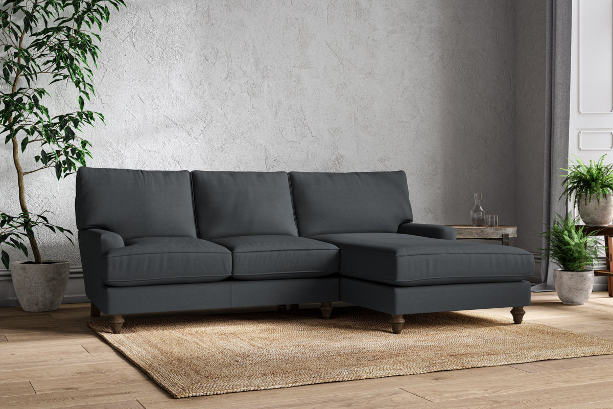 The classic design of our Marri large right hand chaise sofa has a timeless appeal that suits almost any interior. Each piece is handcrafted by our specialist team in our Nottinghamshire workshop combining traditional techniques with exceptional craftmanship. Well-considered details ensure lasting quality, including piped edging, separate back cushions, and hand-turned hardwood feet.
