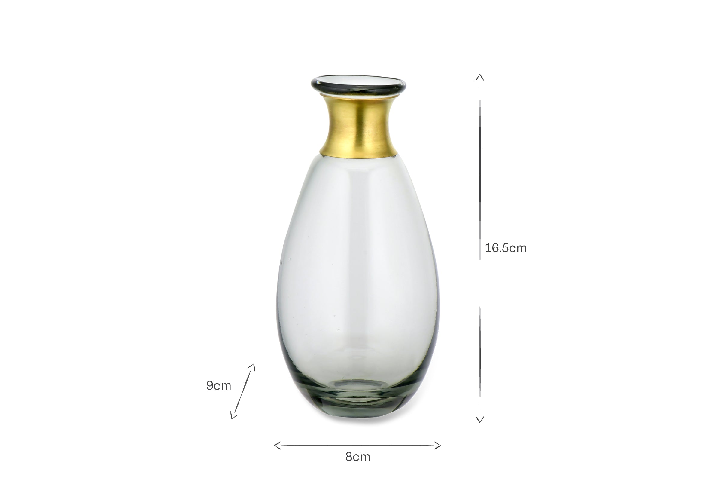 Perfectly proportioned with an appealing curved contour, our Miza mini glasses have a subtle sophisticated colour palette, finished off with a decorative brass ring.