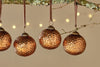 Fun and festive, our Narangi Copper Baubles are inspired by vintage festive decor where fruit from warmer climes would form a highly-prized centre-piece and bring colour and cheer to a wintery scene. The shimmering copper lustre and the dimpled effect of these mouth-blown recycled glass pieces create a metallic look that feels at once naturally opulent and deliciously decorative, perfect for an eclectic tree dressing, a stand-out table dressing or a memorable garland. When they catch the light they create a beautifully dappled twinkle.