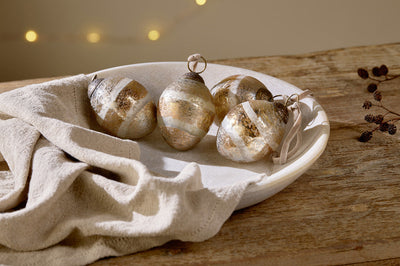These delicate Sardi Star Baubles bring a delightful twinkle to Yuletide revelries. Hang liberally on a bare branch or in clusters twinkling among foliage, these organically shaped baubles are much loved and are fabulous teamed up with our larger Set of 4 Sardi Stars for harmonious form and contrasting scale. sumptuously decked-out tree or bare branch display. Finished with an antique-style clasp and elegant velvet ribbon. Available in clear or antique gold.