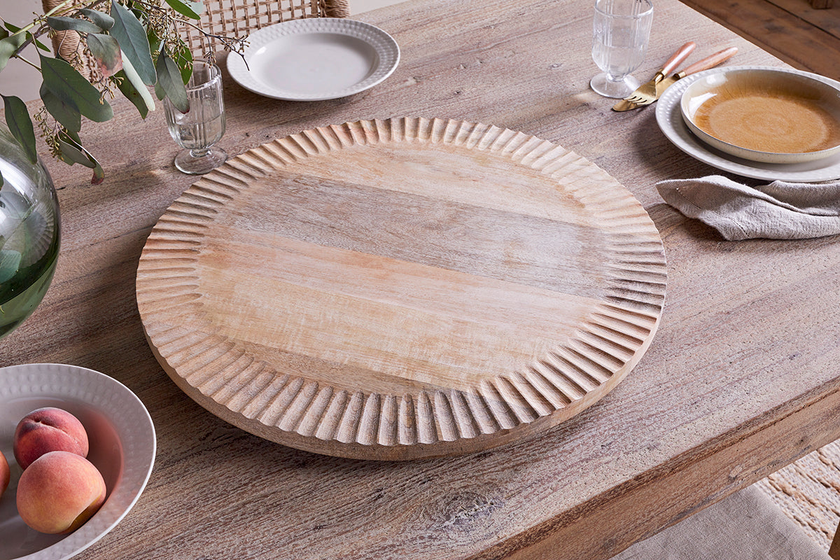 Inspired by rustic serving boards, we have designed the handmade Soria collection to bring a relaxed feel to summer dining and entertaining. The decorative etching adds a layer of stylish detail and texture to this functional piece, while rotating to serve up breads and cheeses, or dips and crudites with ease, or acting as a backdrop to mouthwatering grazing boards. These are a lovely additions to the kitchen, bringing a touch of laid back style.