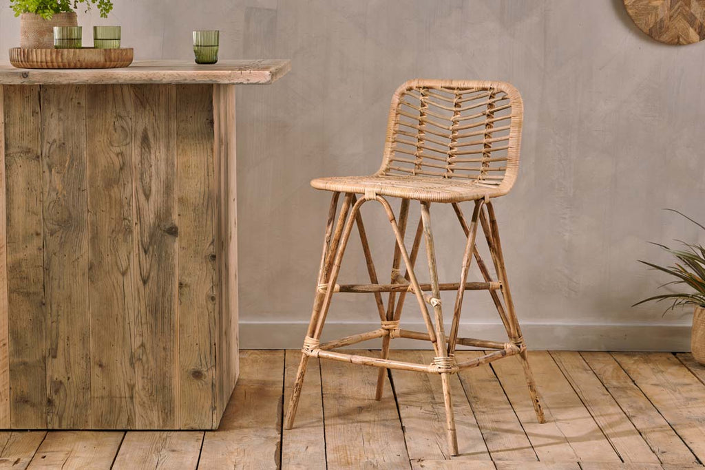 Our collection of bar stools are handcrafted from materials such as mango wood, leather, cane and rattan, these unique breakfast bar stools come in a variety of shapes, styles and sizes to complement your bar space. Create a comfortable and welcoming social space with our collection of kitchen stools Read less