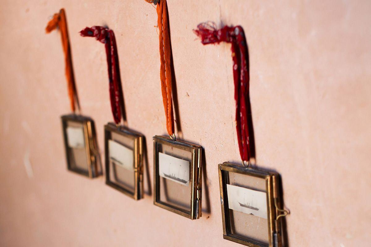 Our beautiful tiny brass Kiko frames are a fun way to display small keepsakes and photos, allowing you to get really creative. Each one is made from glass and 'antique' brass and come complete with a gorgeous sari tie which means they can also be hung on the Christmas tree.