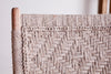 The framework for this piece is made from mango wood, which we love for its natural variations in the grain. A by-product of mango farming, mango trees are initially grown for their fruit, and harvested over a number of years, then once the trees have stopped bearing fruit, they are cut down to allow farmers to plant more trees. Selling the waste material also provides the farmers with a supplementary income. The panelling is woven from jute, a great natural material we love to use as it is a fast-growing, rain-fed crop that has little need for fertilisers or pesticides. It is a natural vegetable fibre that can be spun into strong and durable threads, perfect for weaving into our chair designs.